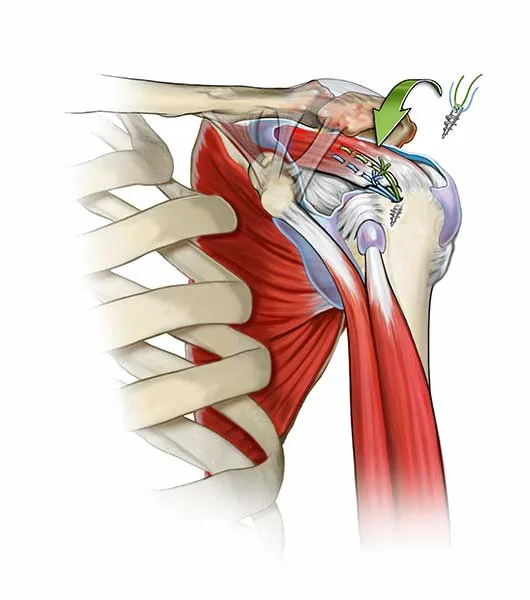 The surgery involves a general anaesthetic (so you’ll be asleep) and we also use nerve blocks to numb the pain when you wake up. Your shoulder will be numb, and you won’t be able to move your shoulder, arm and hand for several hours, (the effect can last between 6 and 24 hours). The surgery is carried out through 3 or more very small incisions around the shoulder.